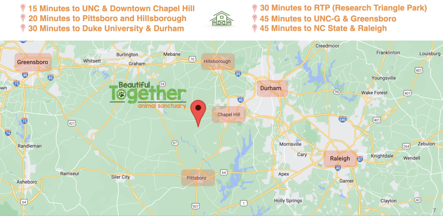 15 minutes from UNC, 30 minutes from Duke/Durham, 45 min from NC State/Raleigh, 45 min from UNCG/Greensboro